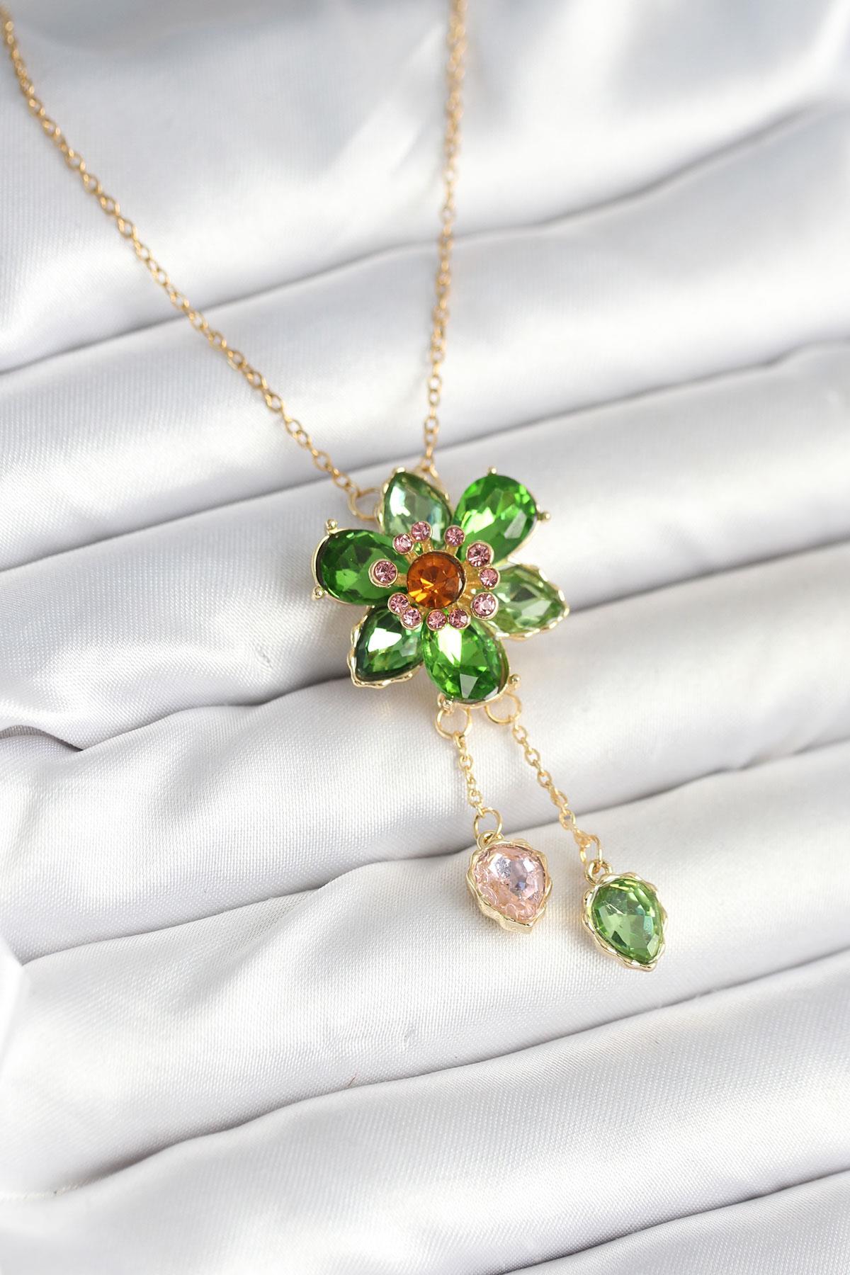 316L Çelik Zincir Gold Renk Çiçek Model Sallantılı Kadın Kolye