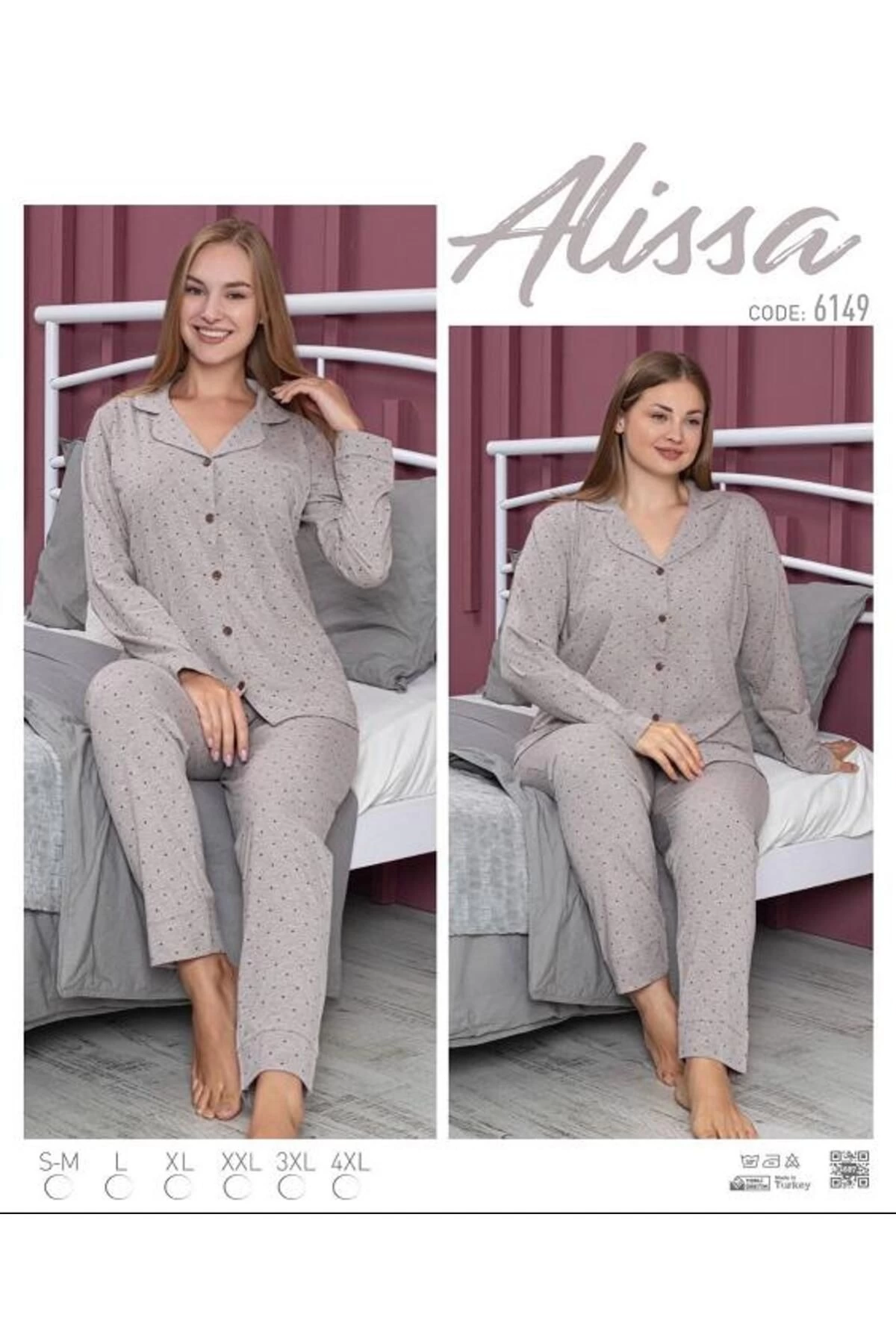 Alissa 6149 Bayan Önü Düğmeli Puantiye Desenli Pijama Takımı (Alissa.6149__R11)