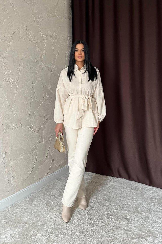 Bej Petek Jakar Kumaşlı Gömlek