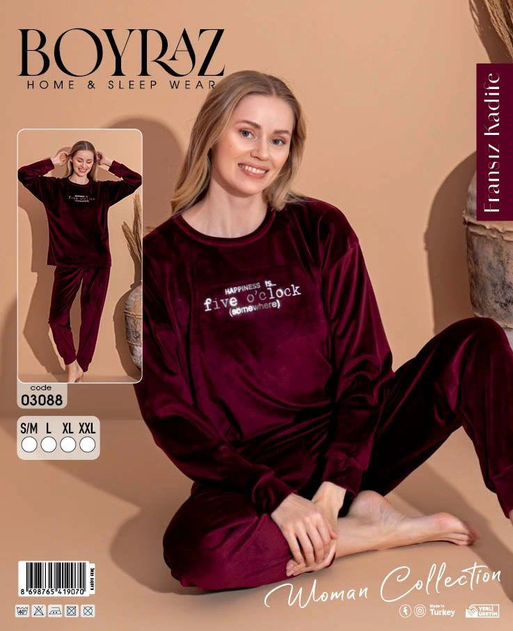 Boyraz 03088 Fransız Kadife Kumaş Uzun Kol Pijama Takımı (Boyraz.03088__R23)