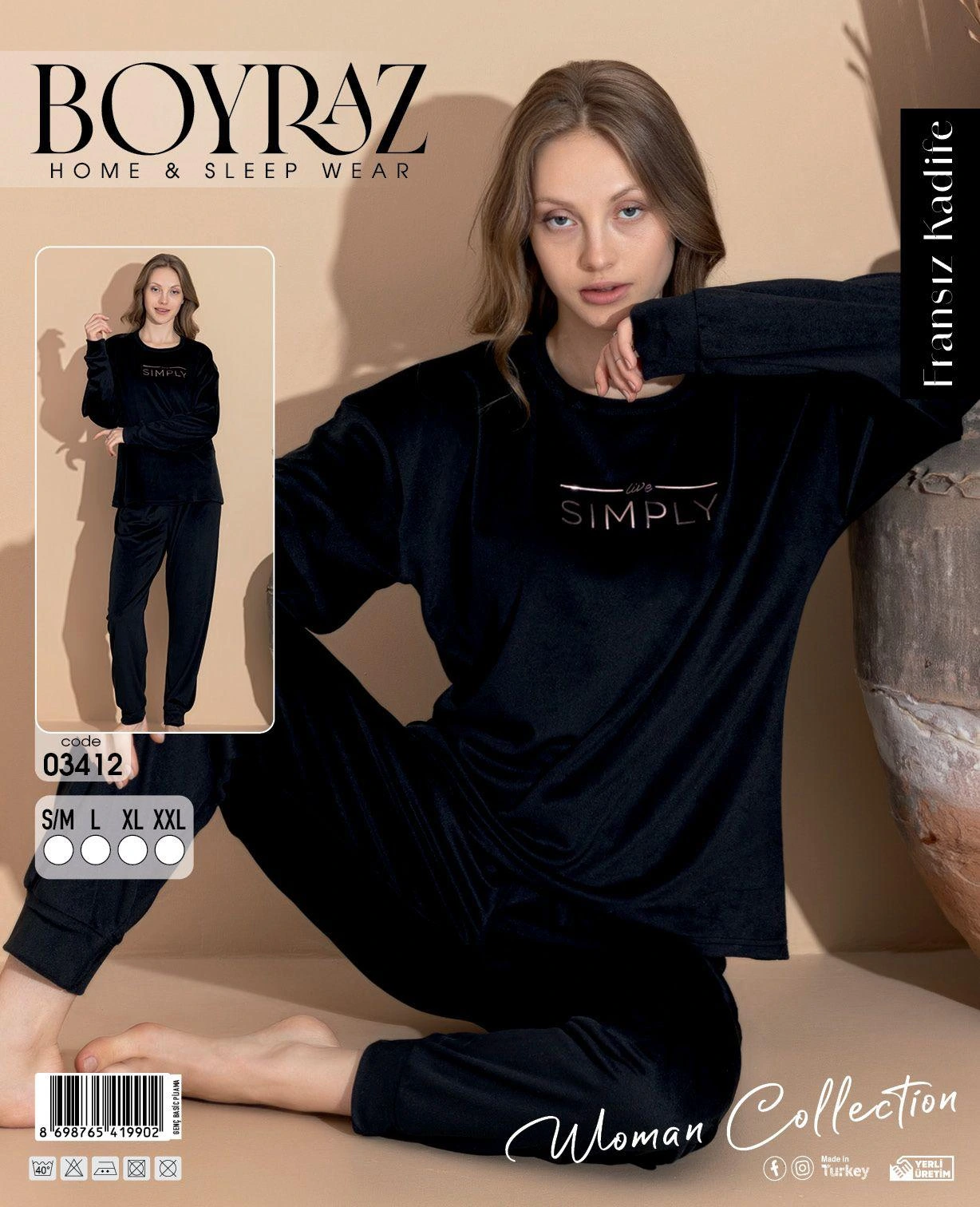 Boyraz 03412 Fransız Kadife Kumaş Uzun Kol Pijama Takımı (Boyraz.03412__R03)