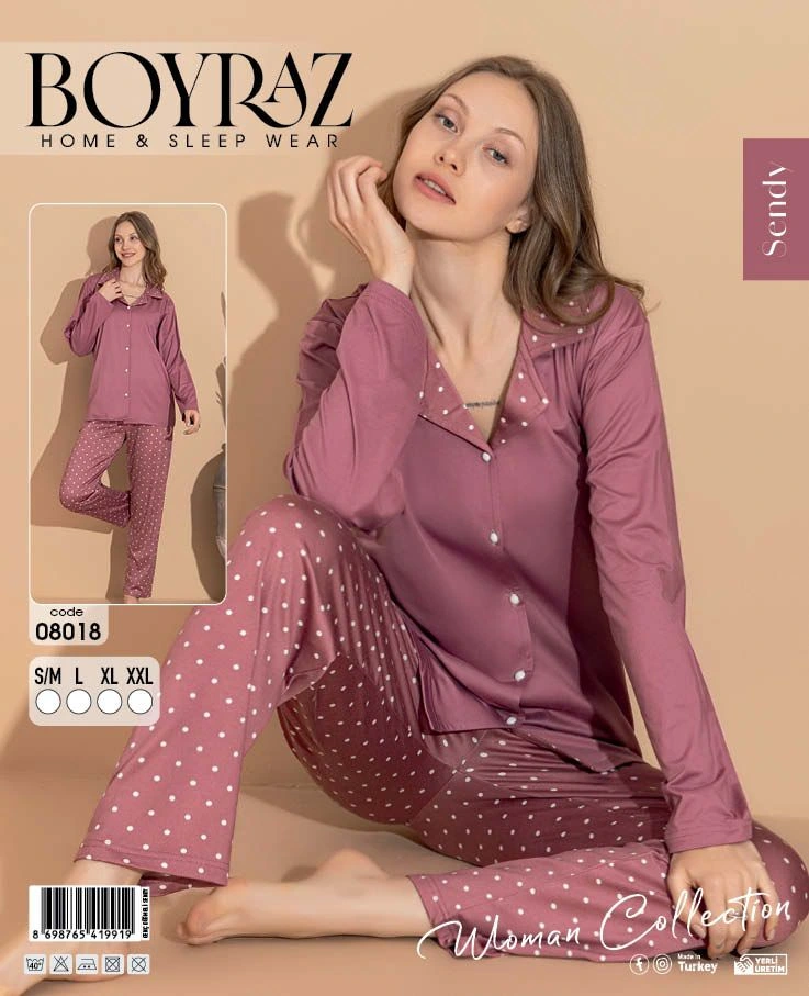 Boyraz 08018 Sendy Kumaş Gömlek Yaka Pijama Takımı (Boyraz.08018__R04)