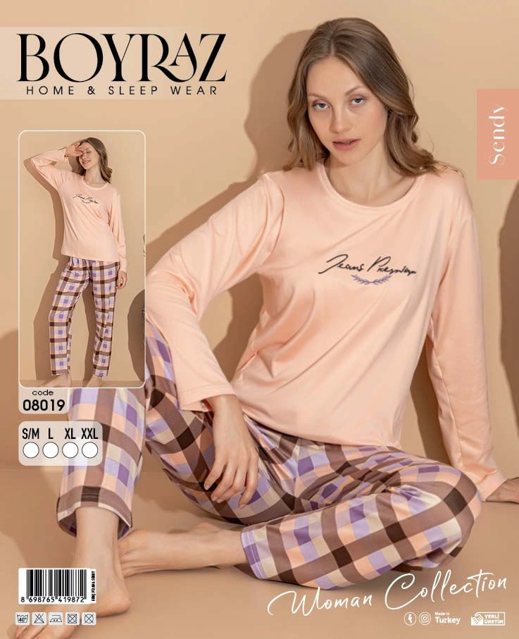 Boyraz 08019 Kadın Sendy Kumaş Uzun Kol Pijama Takımı (Boyraz.08019__SOMON)
