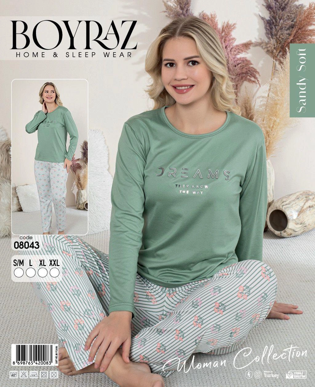 Boyraz 08043 Kadın Sandy Soft Uzun Kol Pijama Takımı