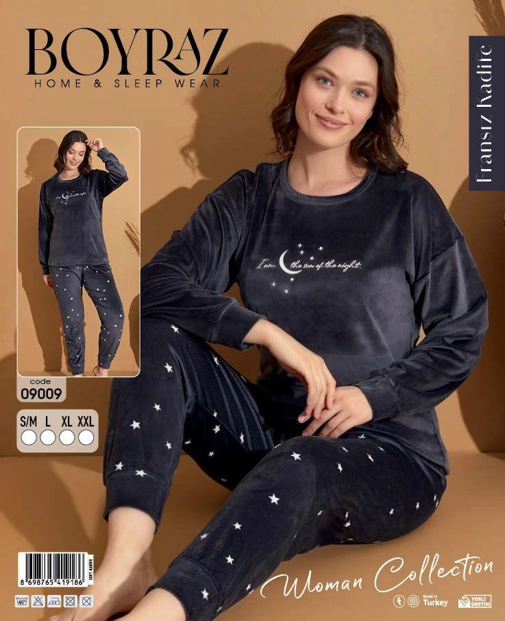 Boyraz 09009 Fransız Kadife Kumaş Uzun Kol Pijama Takımı