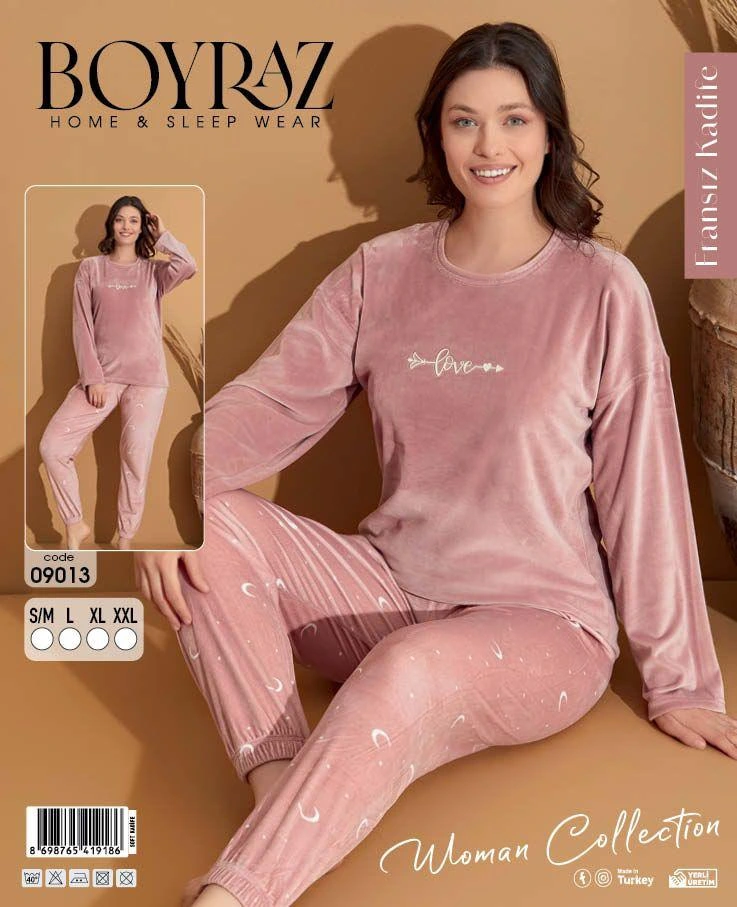 Boyraz 09013 Fransız Kadife Kumaş Uzun Kol Pijama Takımı (Boyraz.09013__R69)