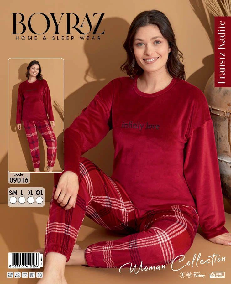 Boyraz 09016 Fransız Kadife Kumaş Uzun Kol Pijama Takımı (Boyraz.09016__BORDO)