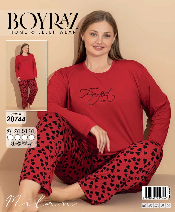 Boyraz 20744 Kadın Battal Uzun Kol Pijama Takımı (Boyraz.20744__R02)