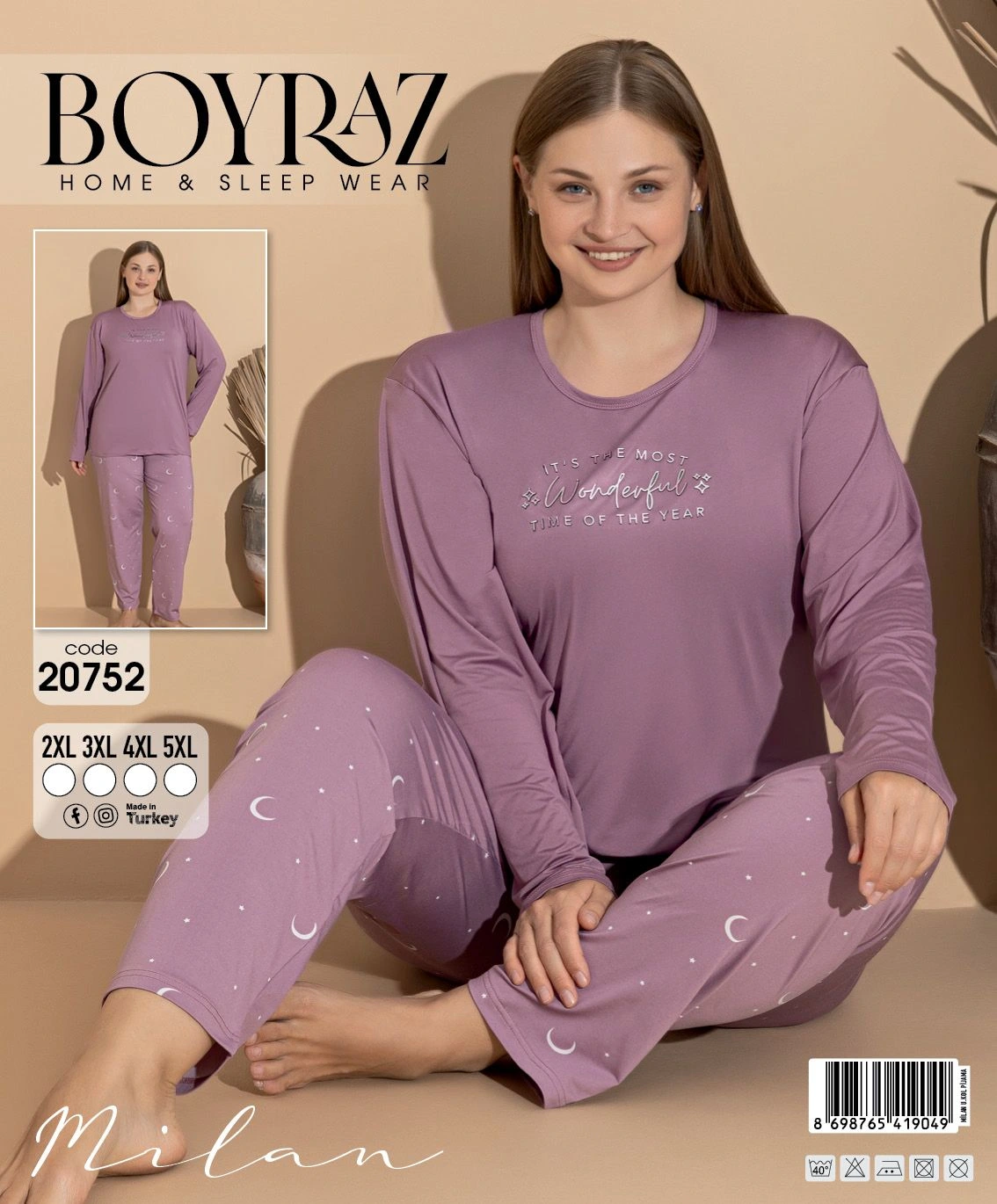 Boyraz 20752 Kadın Battal Uzun Kol Pijama Takımı (Boyraz.20752__MOR)