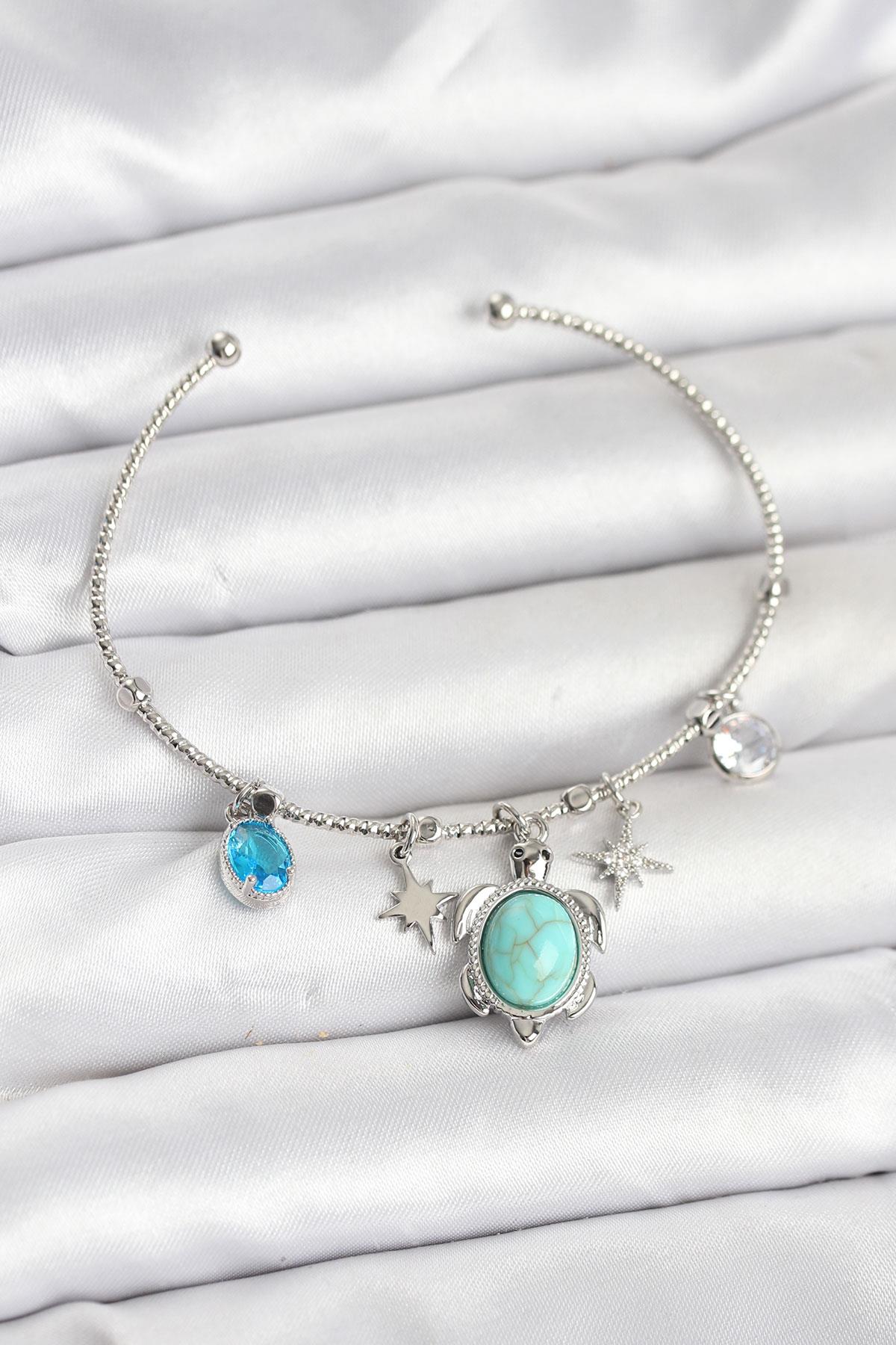 Caretta Caretta Charmlı Gümüş Renk Kadın Bileklik (BB8034)