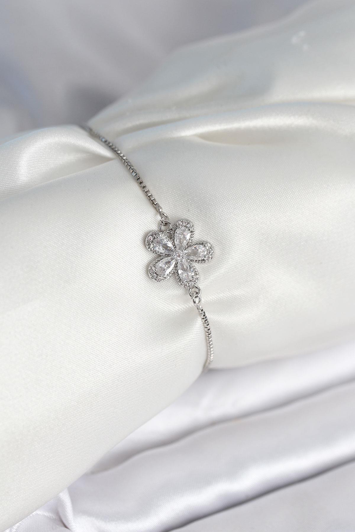Çiçek Model Asansörlü Gümüş Renk Kadın Bileklik (BB8012)