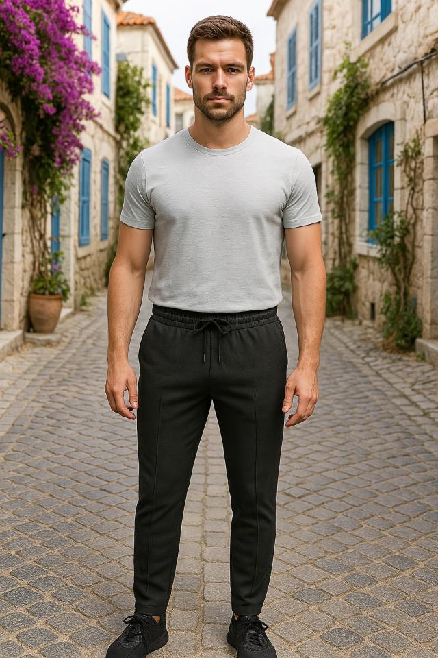 Erkek Yüksek Bel önden Bağcıklı Cepli Waffle Pantolon