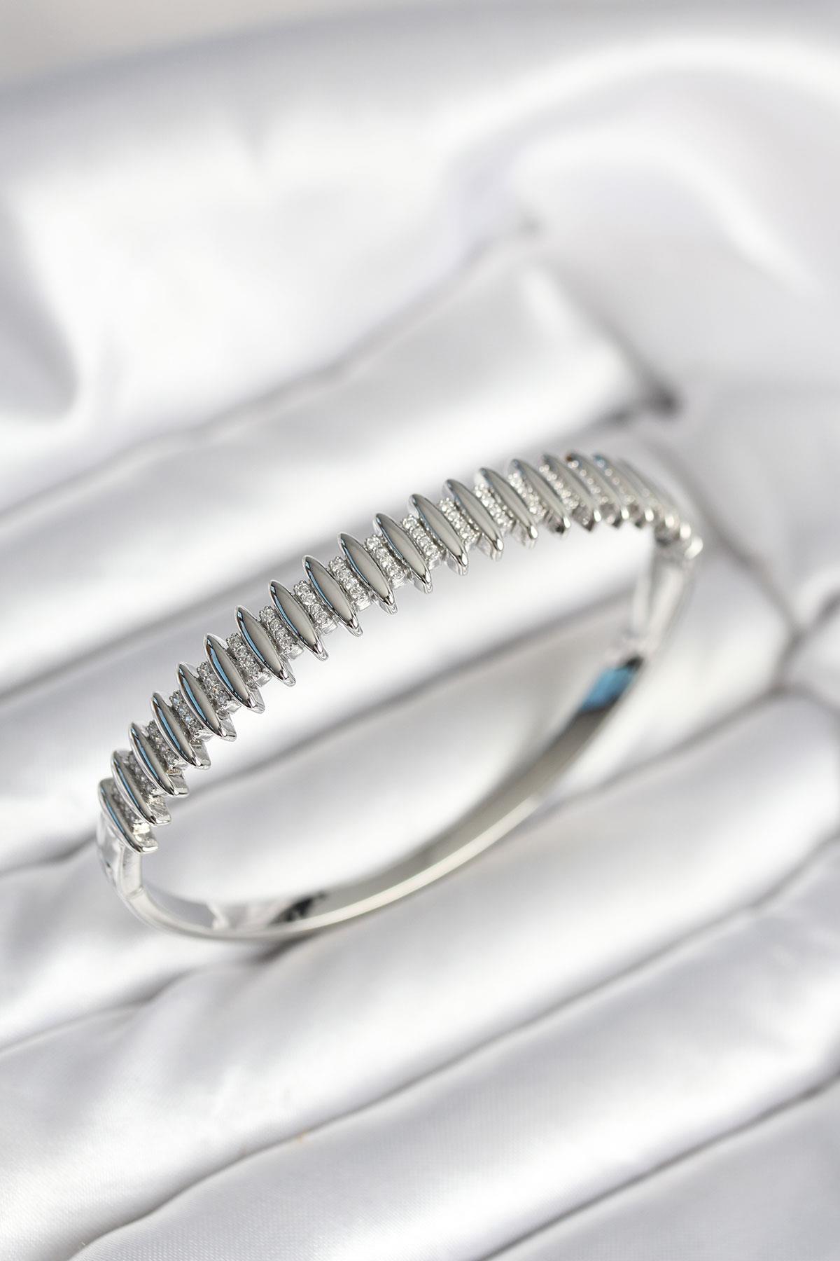 Gümüş Renk Zirkon Taşlı Pirinç Kadın Kelepçe (BB8020)