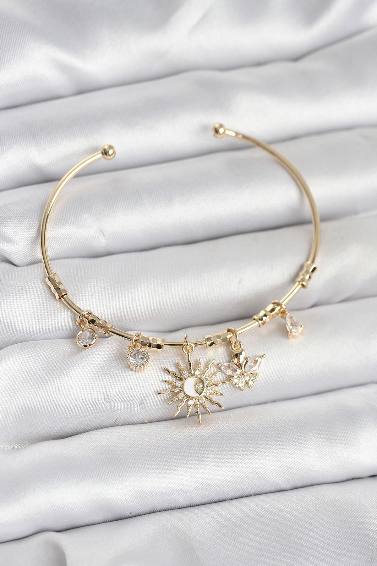 Güneş Charmlı Gold Renk Pirinç Kadın Bileklik (BB8041)