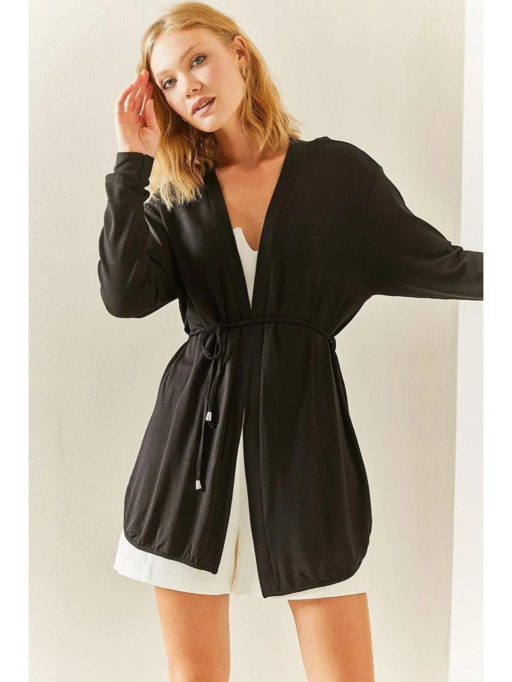 Kadın Uzun Kollu Bağcık Detay Hırka