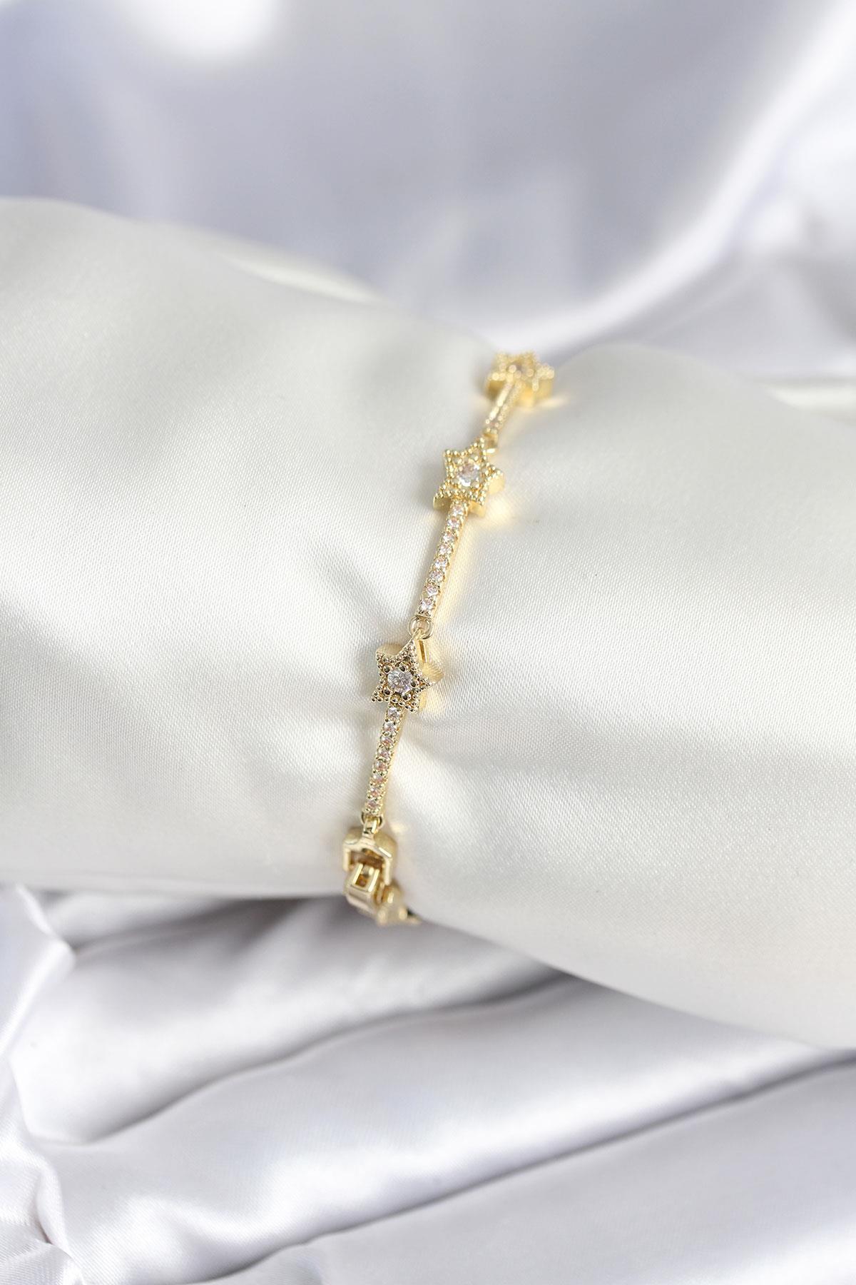 Pirinç Gold Renk Halley Yıldız Model Kadın Bileklik (BB7984)