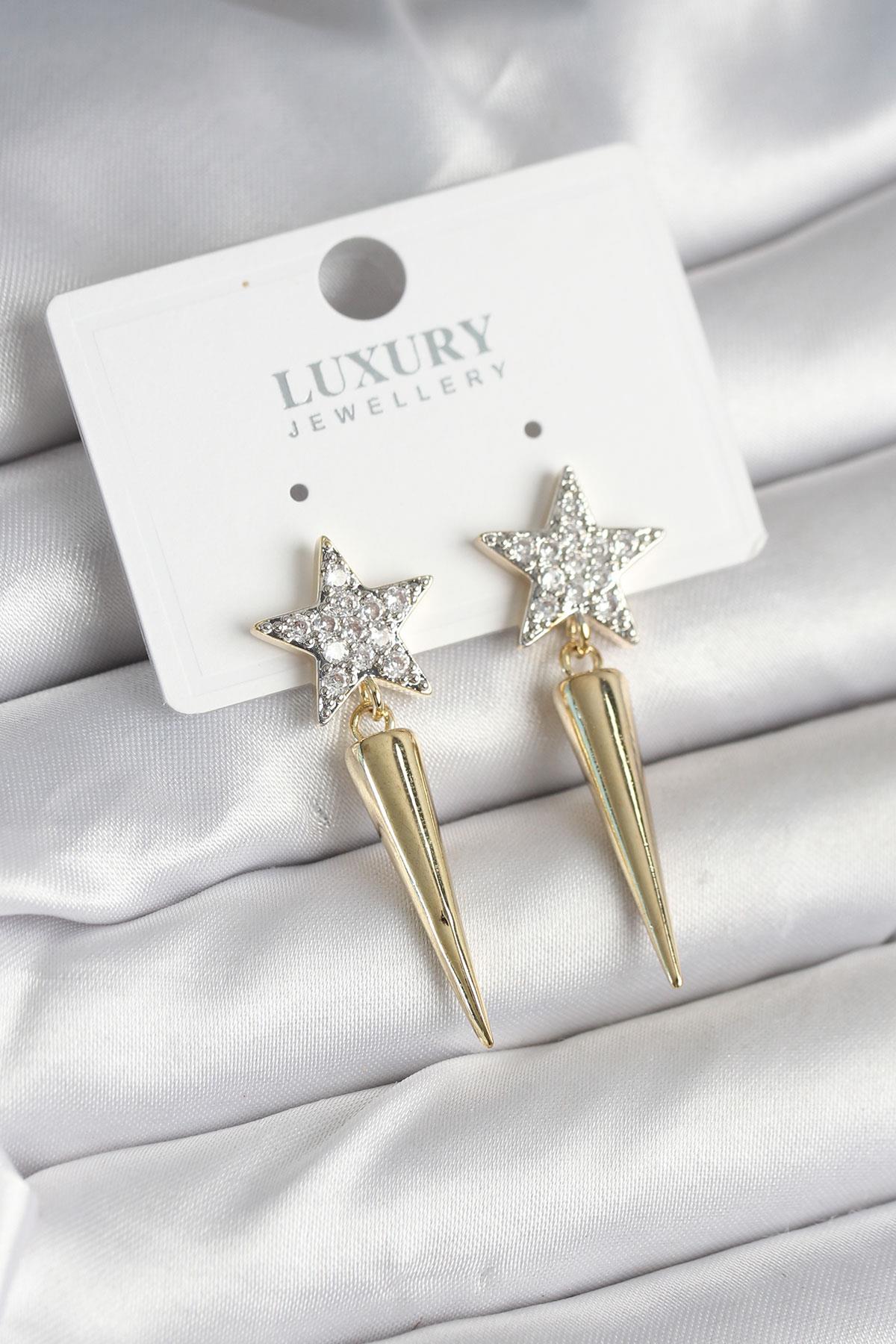 Pirinç Gold Renk Zirkon Taşlı Yıldız Model Çivi Kadın Küpe