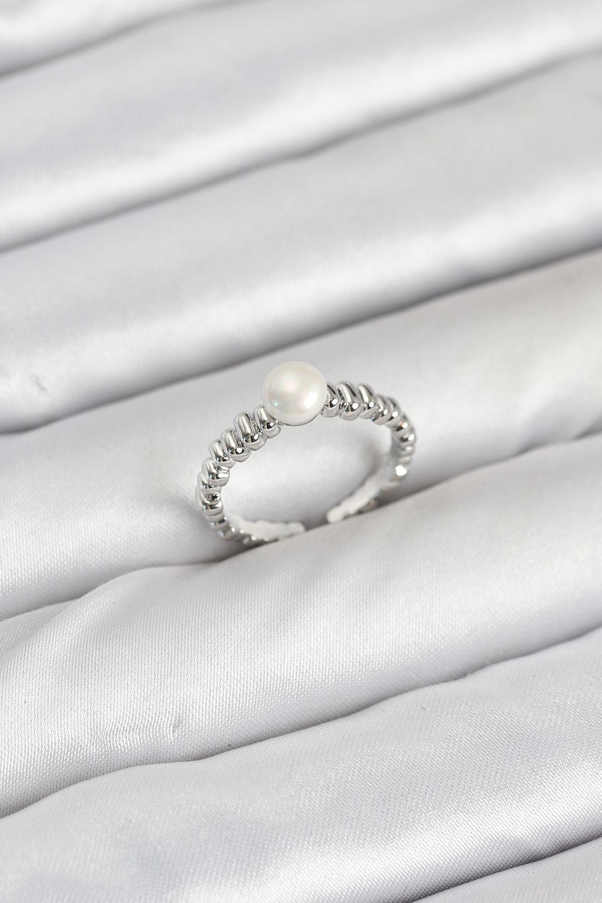 Pirinç Gümüş Renk Göbek İnci Model Kadın Yüzük (BYK3887)