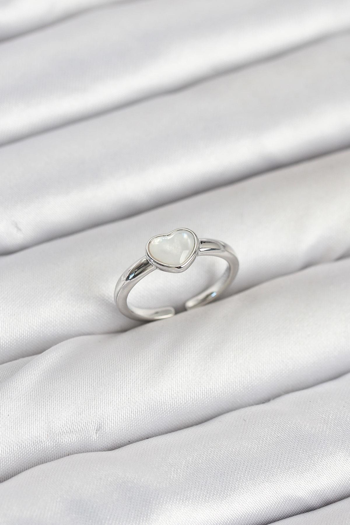 Pirinç Gümüş Renk Kalpli Kadın Yüzük
