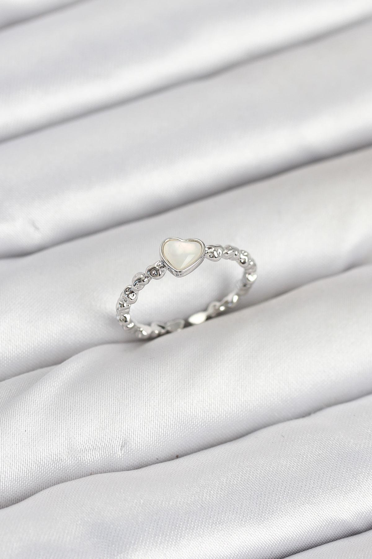 Pirinç Gümüş Renk Kalpli Model Kadın Yüzük (BYK3875)