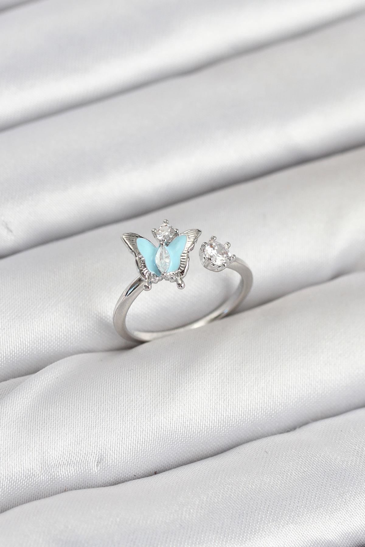 Pirinç Gümüş Renk Kelebek Model Kadın Yüzük (BYK3865)