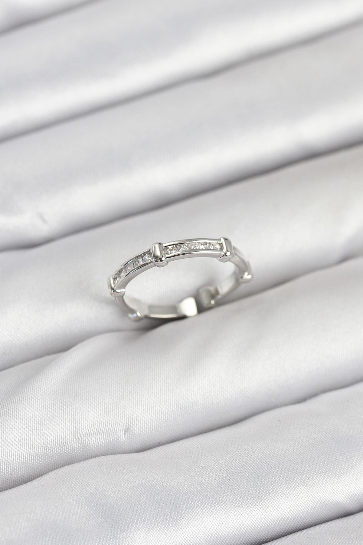 Pirinç Gümüş Renk Kemik Model Zirkon Taşlı Kadın Yüzük (BYK3889)