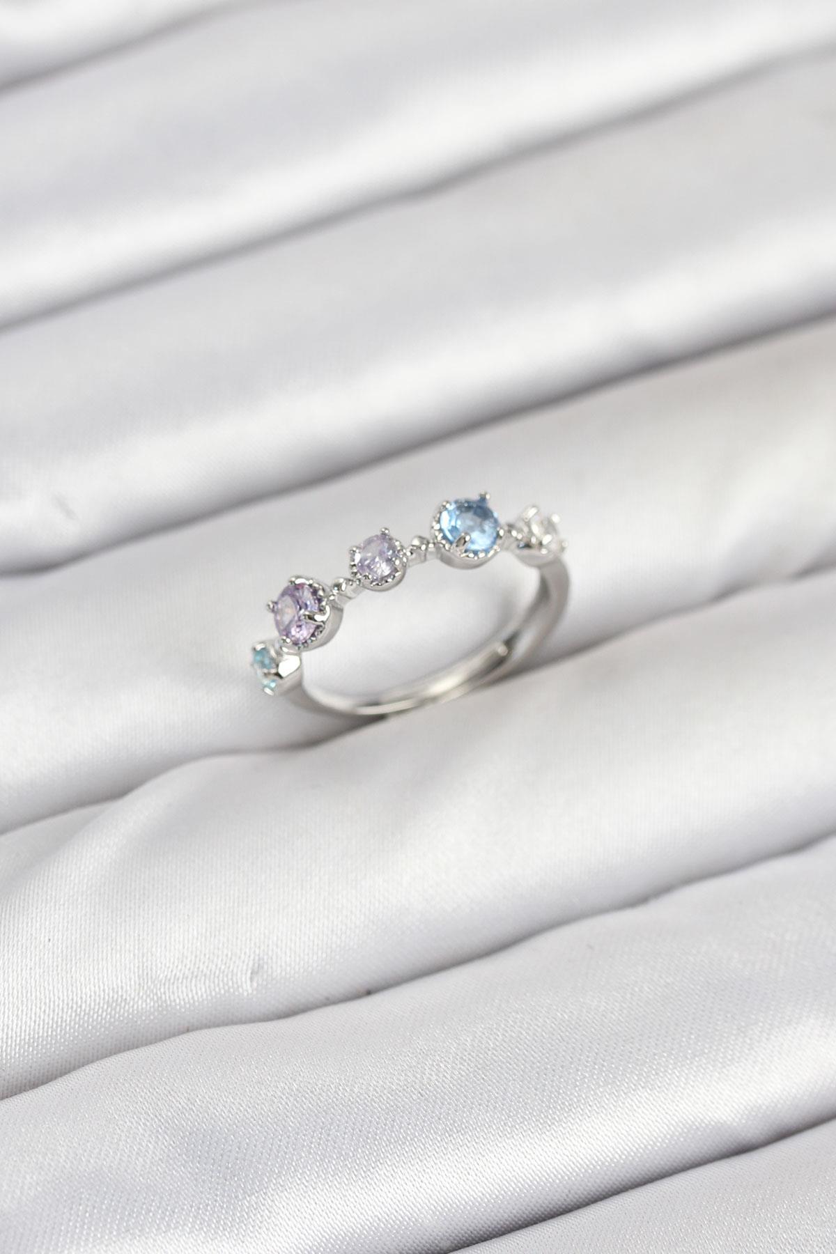 Pirinç Gümüş Renk Renkli Zirkon Taşlı Kadın Yüzük