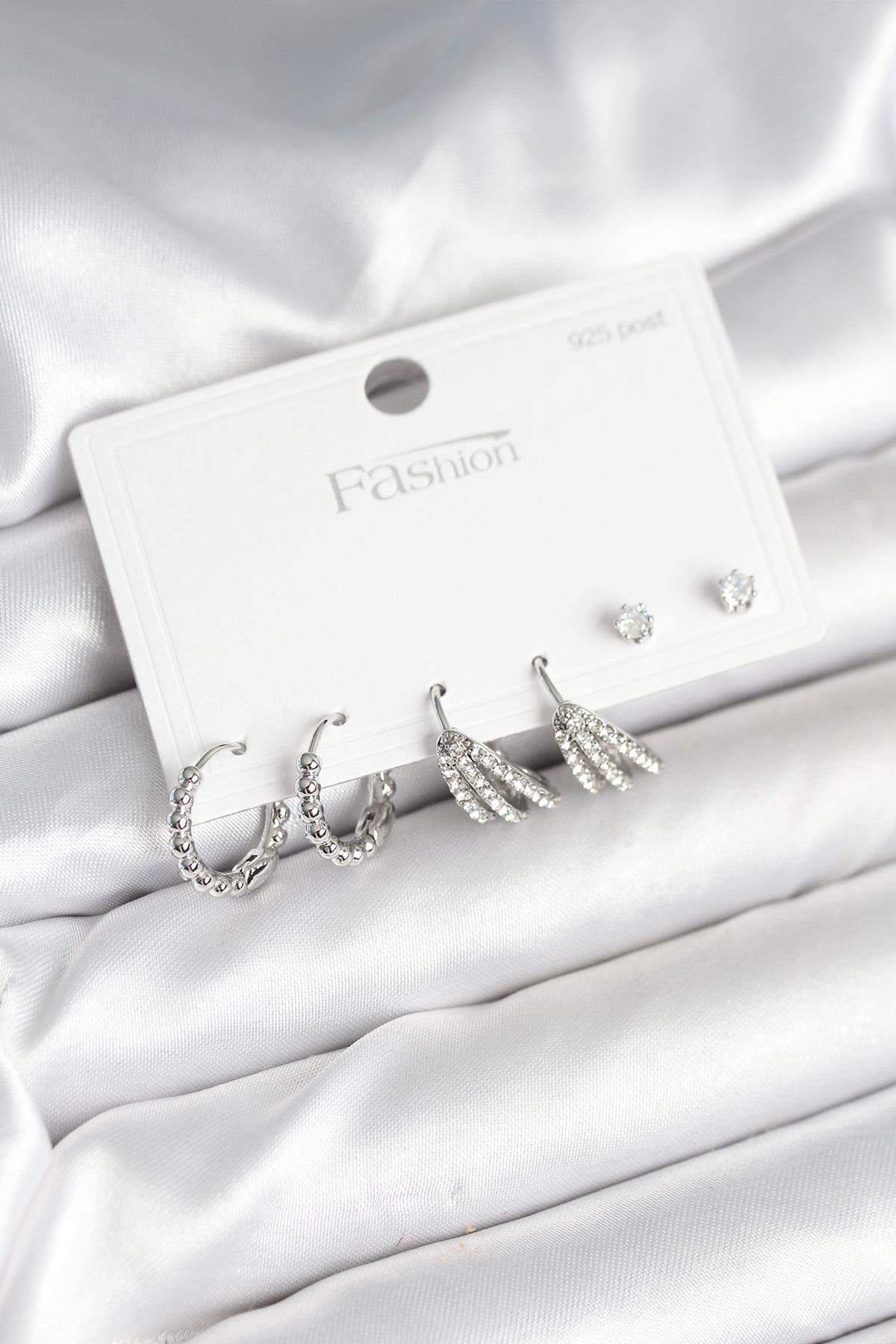 Pirinç Gümüş Renk Zirkon Taşlı 925 Gümüş Çivili Kadın Küpe Seti (BKP11254)