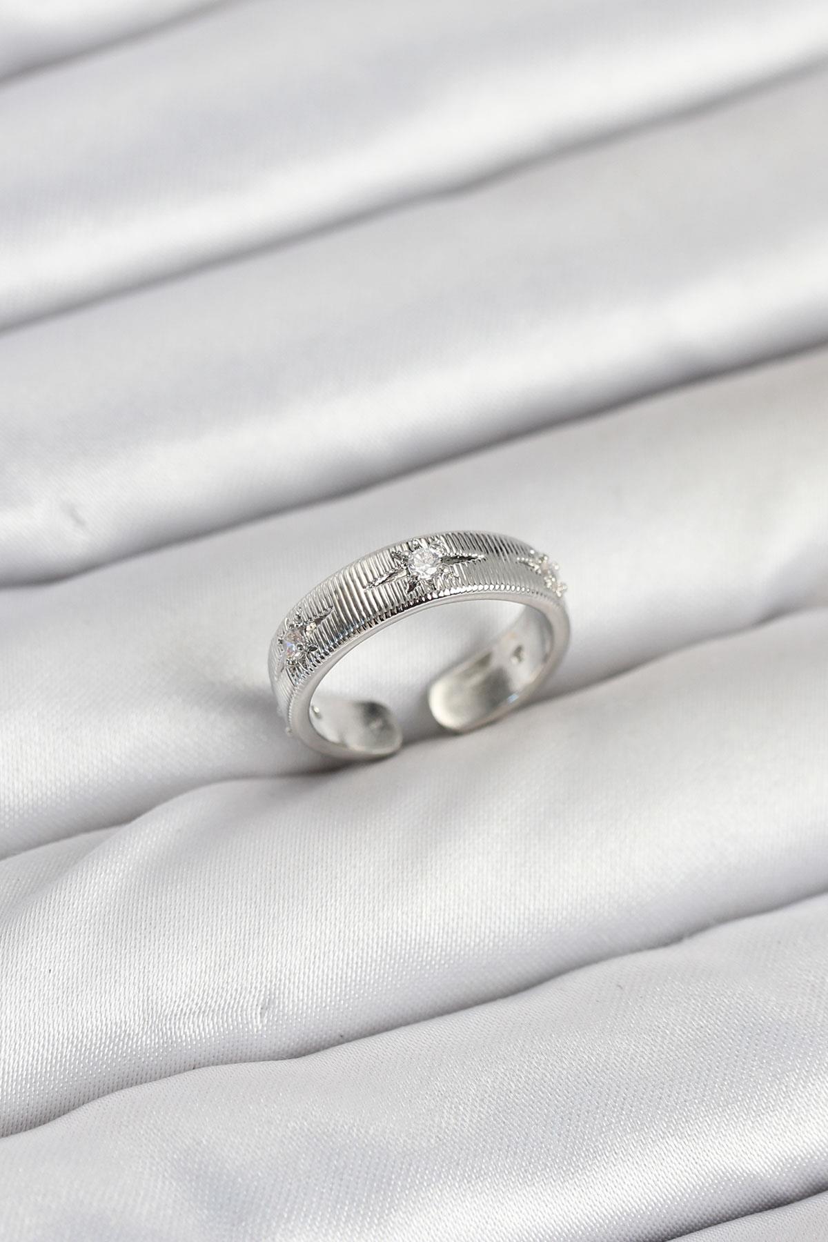 Pirinç Gümüş Renk Zirkon Taşlı Kutup Yıldızı Model Kadın Yüzük (BYK3899)