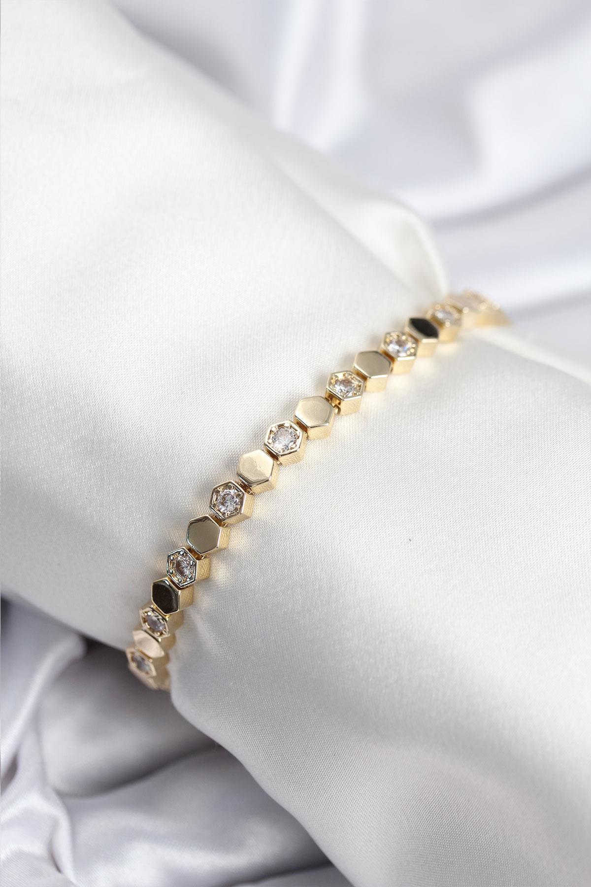 Pirinç VIP Seri Gold Renk Petek Model Kadın Bileklik (BB7925)