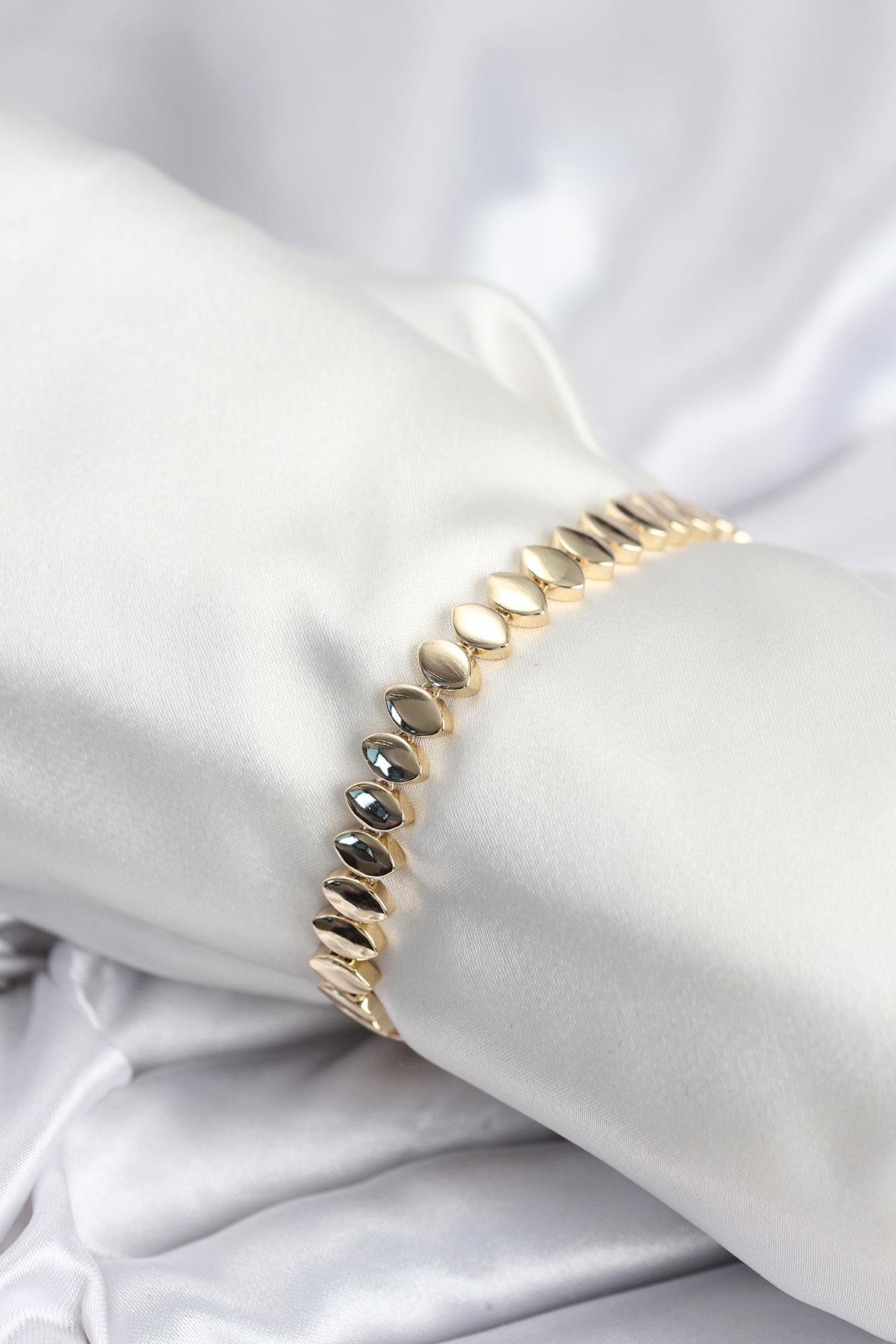 Pirinç VIP Seri Gold Renk Sıralı Arpa Model Kadın Bileklik (BB7943)