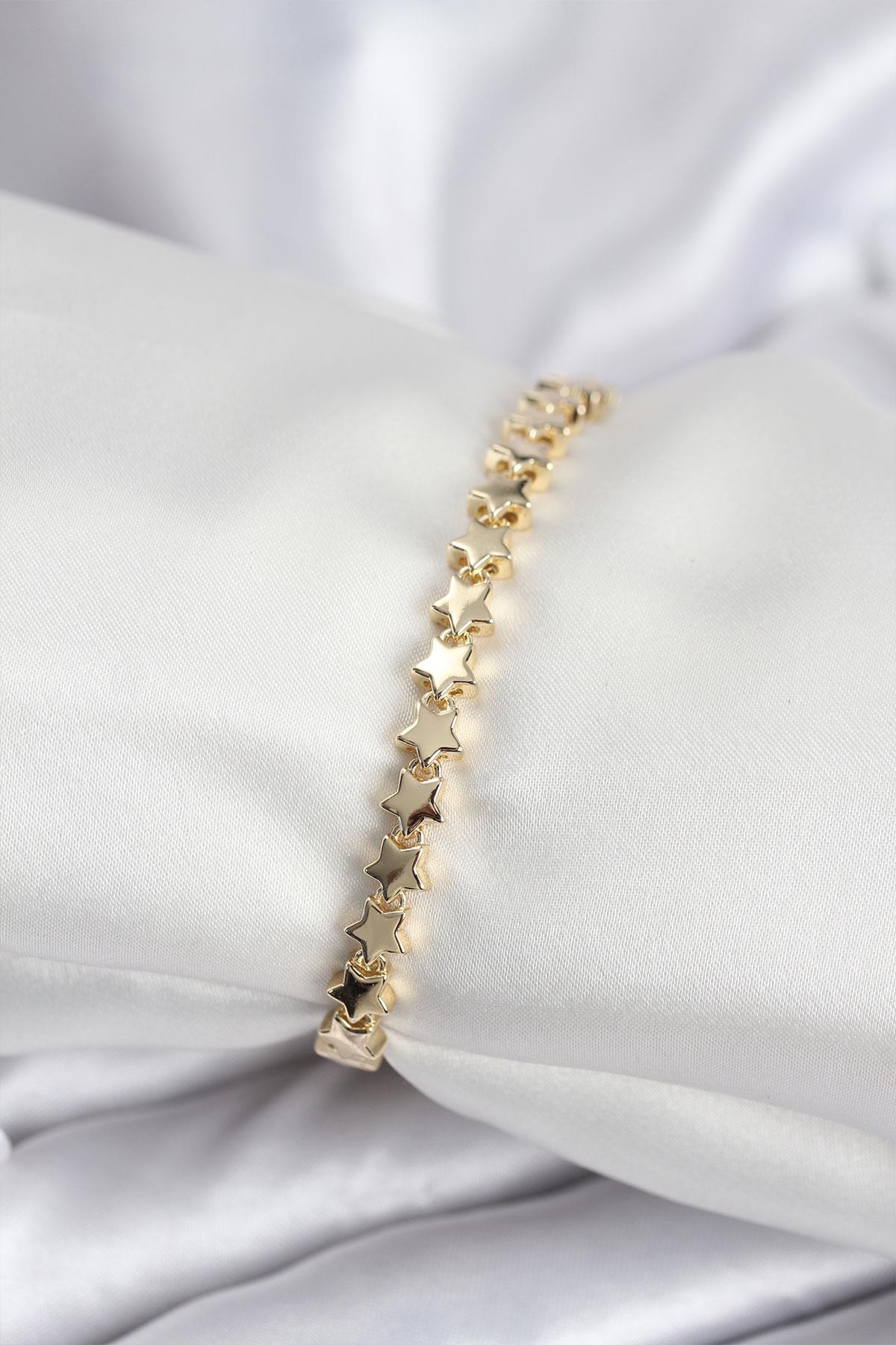 Pirinç VIP Seri Gold Renk Sıralı Yıldız Model Kadın Bileklik (BB7939)