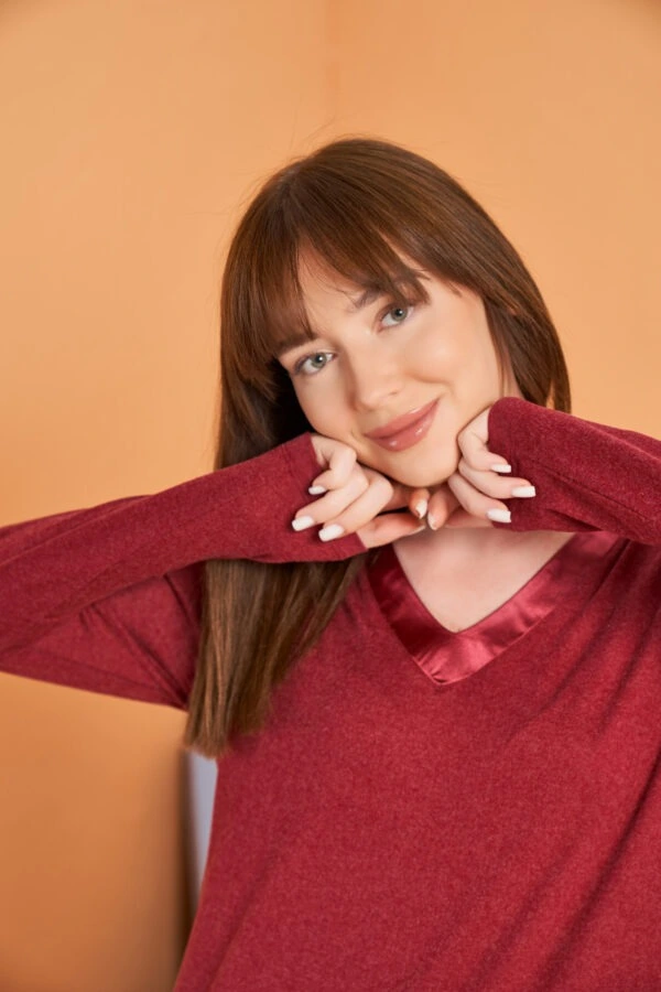 PJS 28091 Kadın V Yaka Uzun Kol Pijama Takımı (PJS28091__R23)