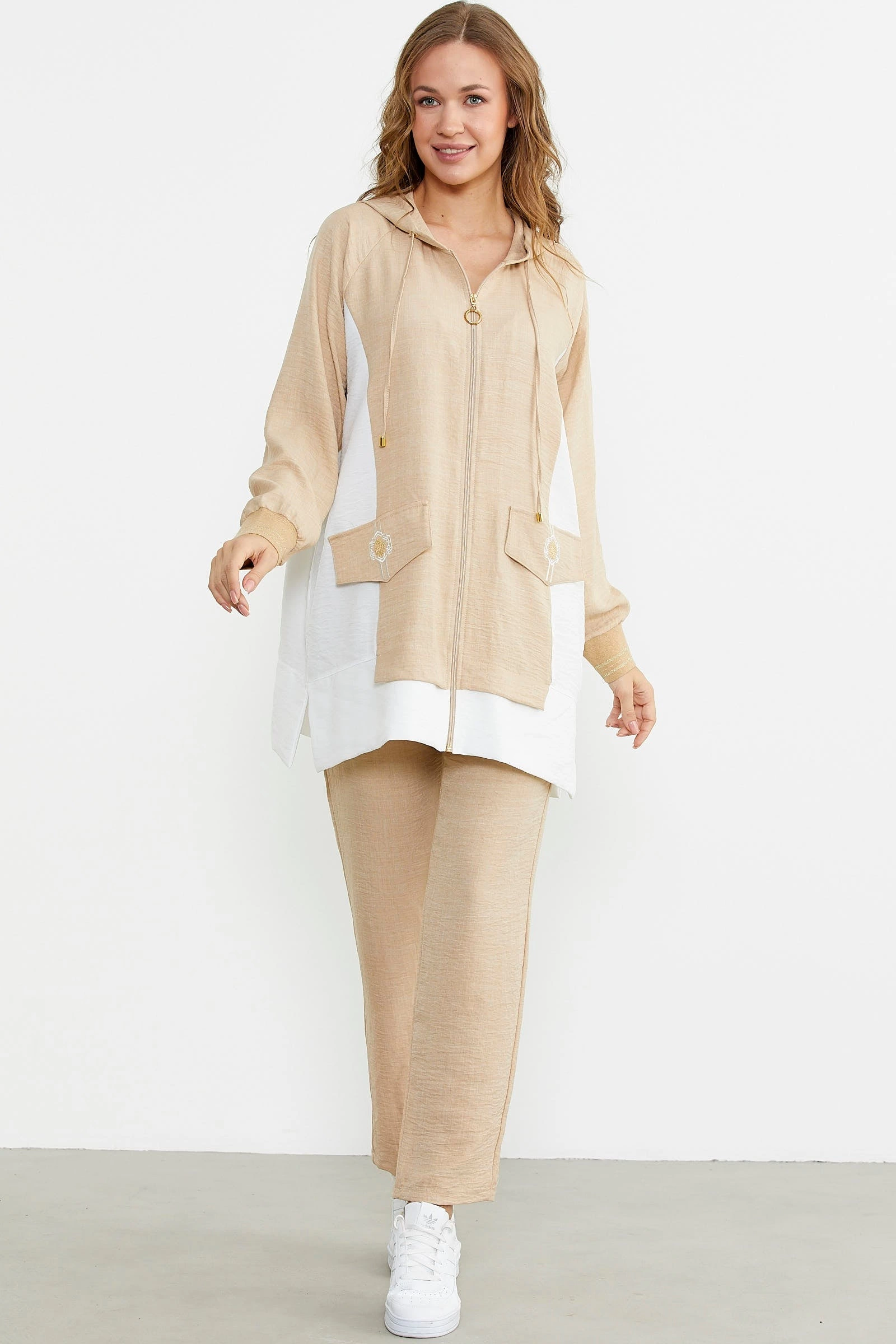 Sementa 76448 Keten Görünümlü Kapüşonlu Tunik Takım (25Y2238-76448.0001__TAŞ)