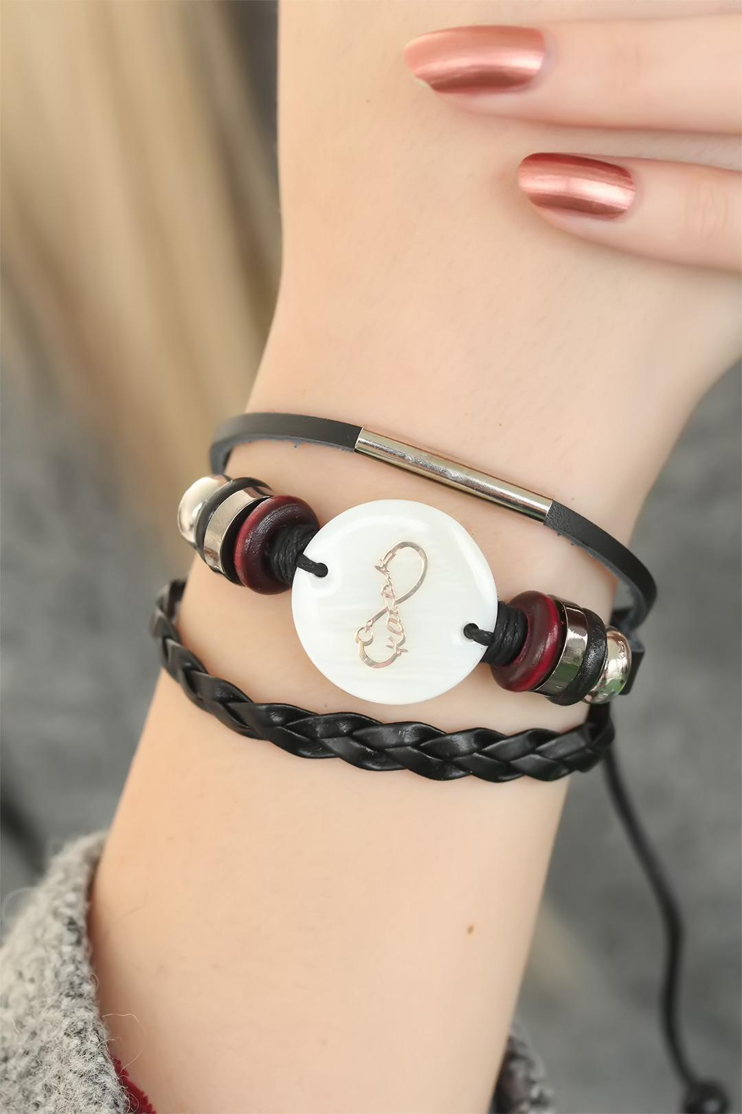 Trend Siyah Renk Sonsuzluk Tasarım Çoklu Deri Bayan Bileklik ile kombinlerinizi tamamlayın.